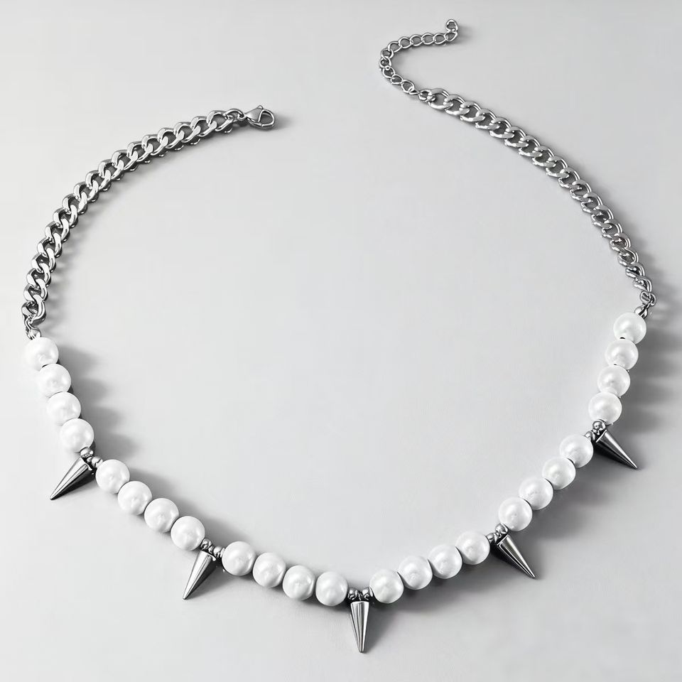 Collar de Perlas con Cadena de Acero Inoxidable Chapado en Plata, Estilo Hiphop, Joyería de Moda para Mujer, Venta al Por Mayor