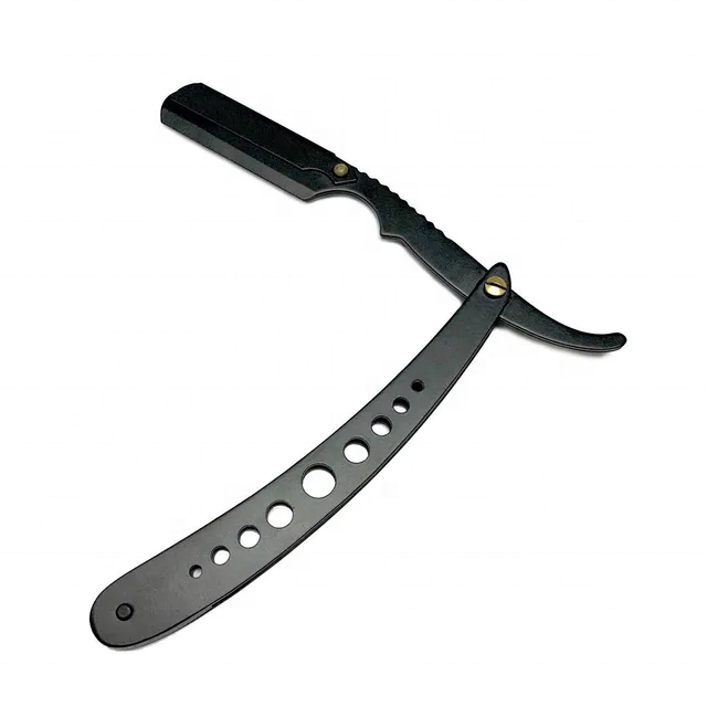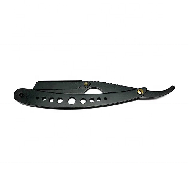 Afeitadora de seguridad plegable profesional de acero inoxidable con mango elegante y recubrimiento de color negro completo, para afeitado corporal masculino, ¡la más vendida!