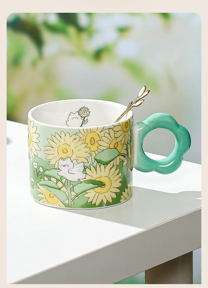 Taza de Cerámica con Asa de Flor, Juego de Tazas Bonitas para Regalo, Gran Venta