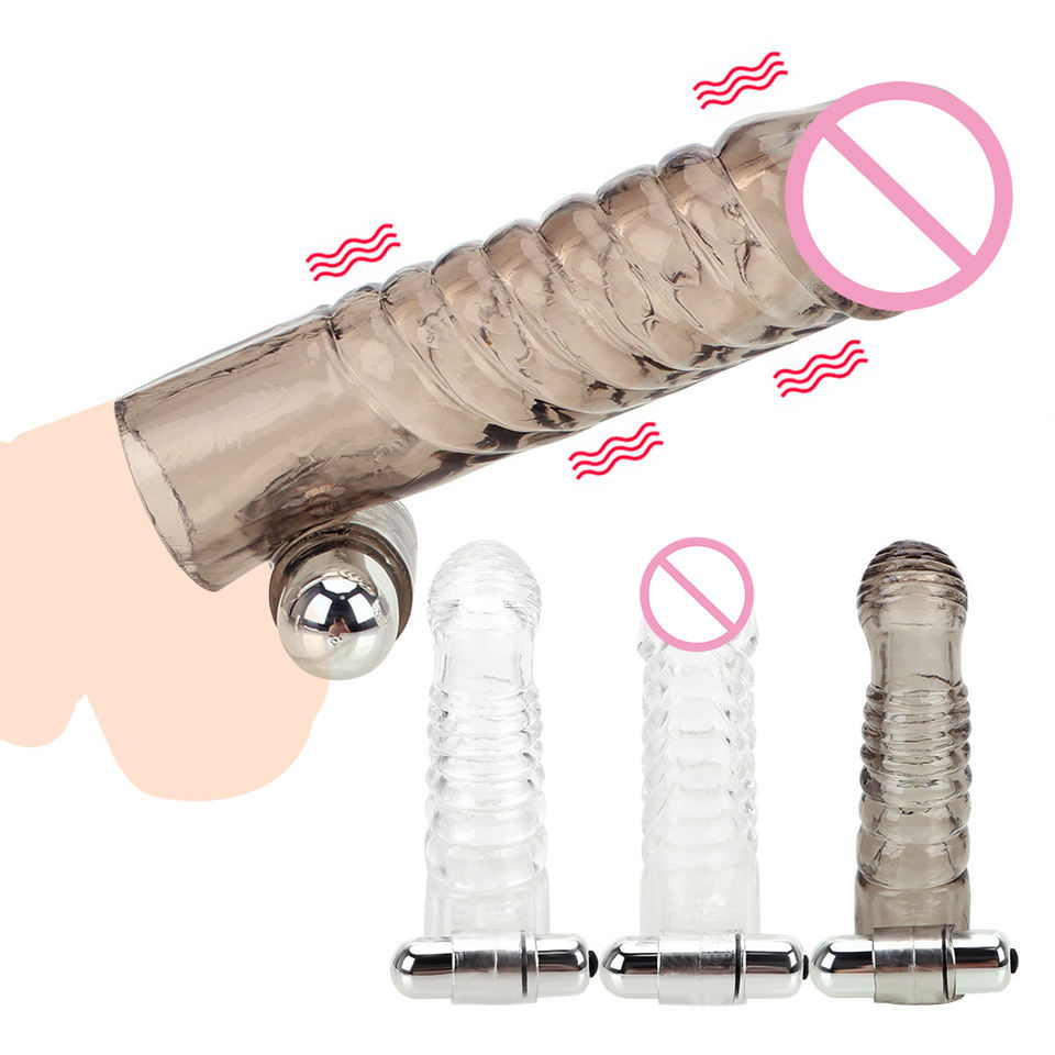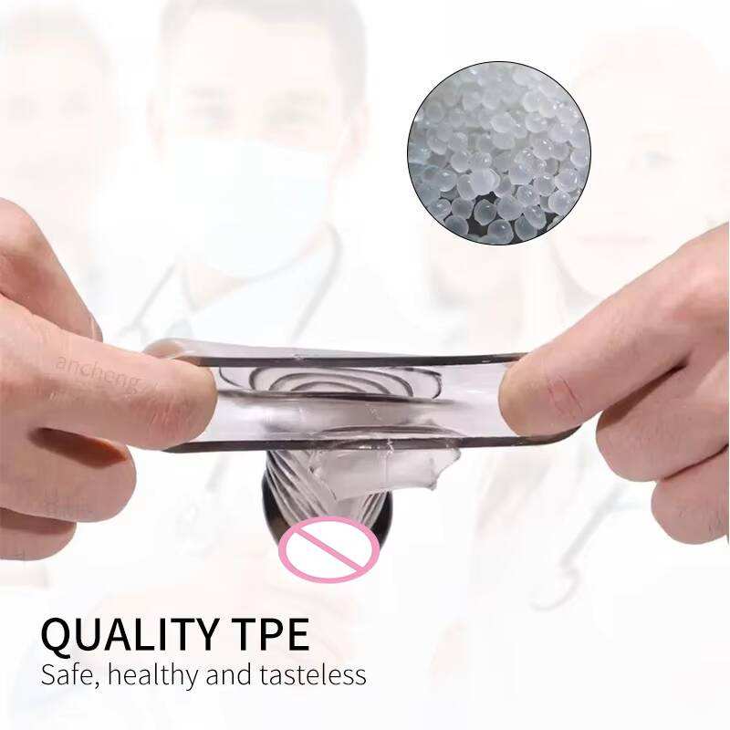 Venta caliente de TPE de grado alimenticio con vibrador estimulador de clítoris condón reutilizable juguetes sexuales para eyaculación retardada del pene