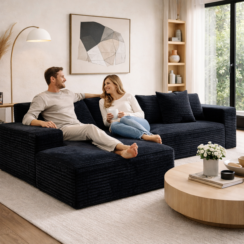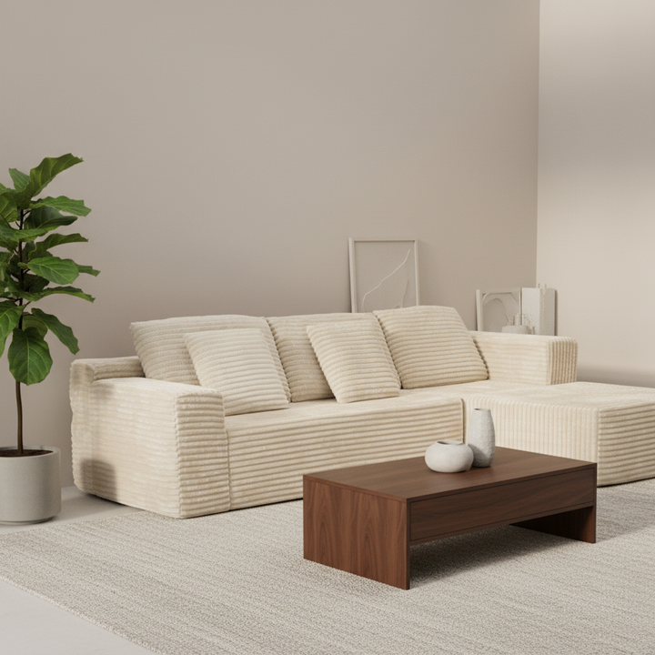 Sofá Modular de Tela de Pana Multifuncional en Forma de L, Comprimido, Blanco, Completamente de Esponja, en Oferta