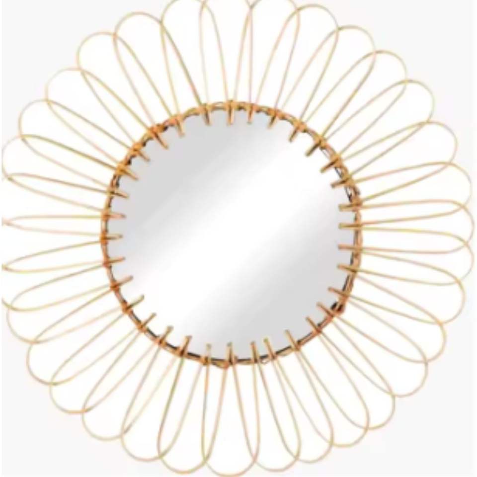 Venta caliente Gantari hecho a mano madera forma redonda pared espejo dibujos animados diseño ratán para fines decorativos