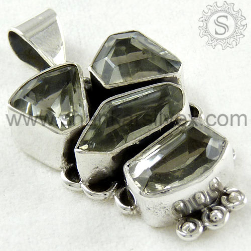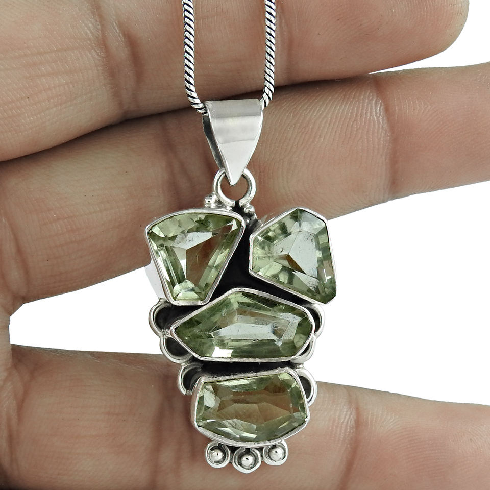 Venta caliente buena calidad 925 plata esterlina Natural verde amatista piedra preciosa aspecto antiguo colgante clásico joyería hecha a mano India