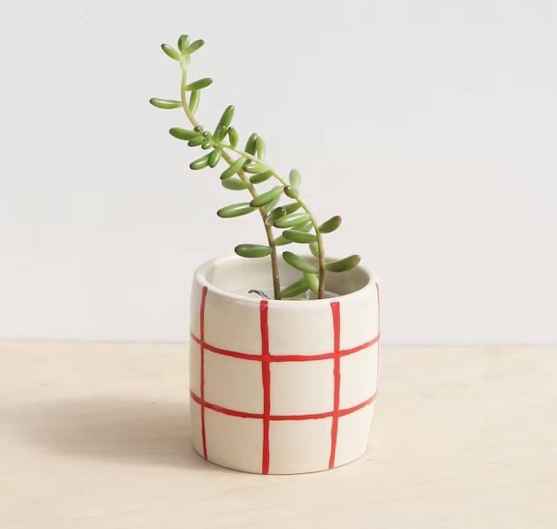 Maceta de Cerámica con Diseño de Cuadrícula, Duradera, para Plantas Suculentas de Interior, Elegante Adorno Decorativo para el Hogar