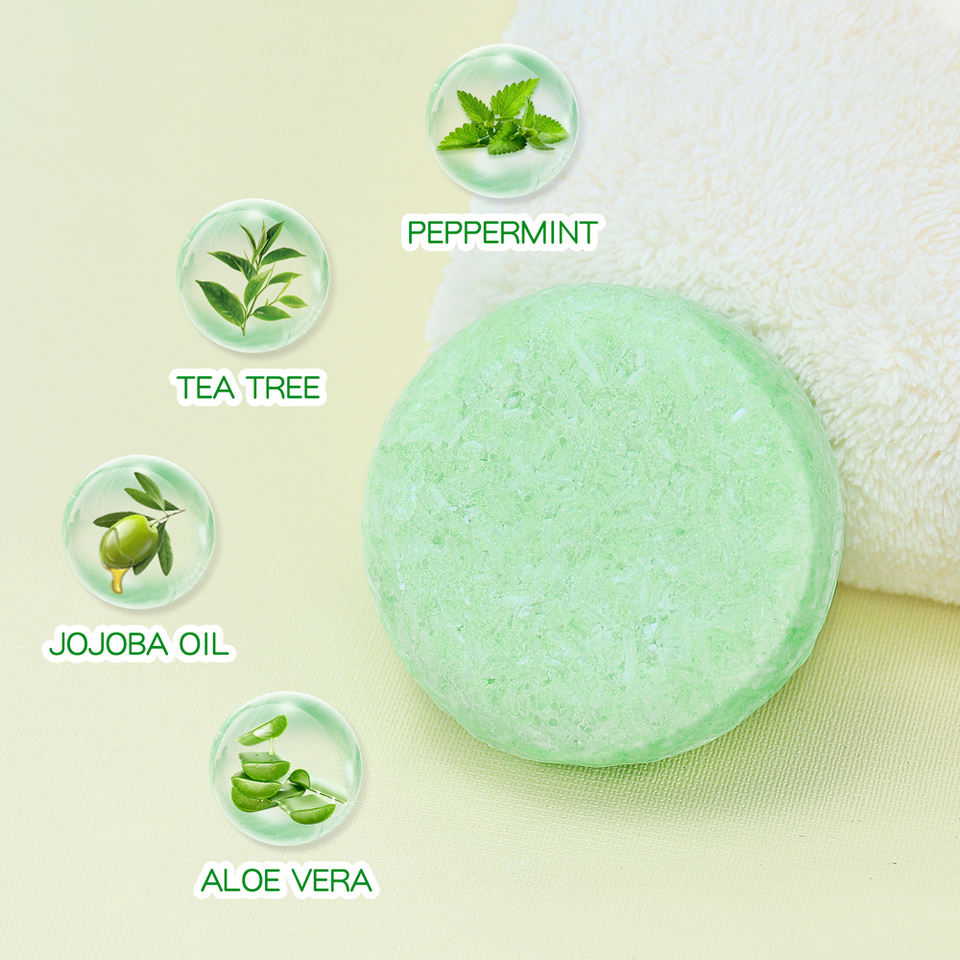 Barra de champú para el cabello, champú sólido, aceite de menta, aceite de árbol de té, productos para el cuidado del cabello, champú de menta de árbol de té, barra de jabón