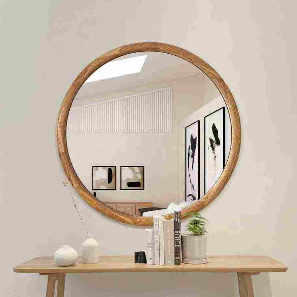 Venta caliente Espejos pequeños hechos a mano Marco de madera redondo para interiores Fabricación india con calidad superior