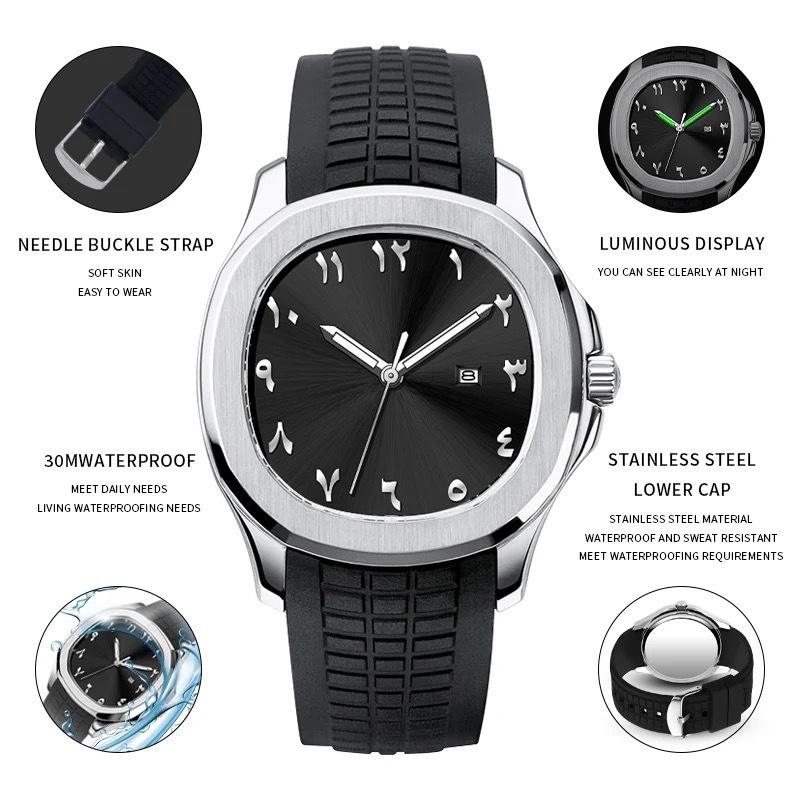 Reloj de cuarzo con números arábigos de granada de mano, reloj deportivo de silicona, reloj de pulsera con esfera de números arábigos