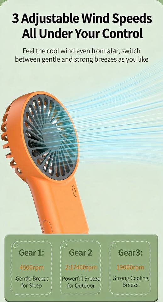 Ventilador de Mano Plegable USB, Mini Ventilador Portátil de Escritorio para Estudiantes con Mosquetón Personalizado