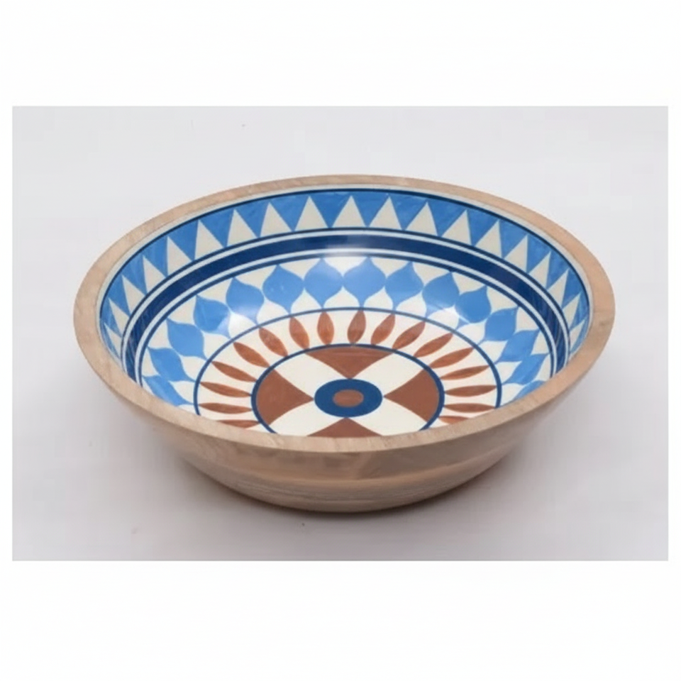 Venta caliente diseño hecho a mano esmalte impreso cuenco de madera cuenco para servir Pasta forma redondeada cuenco para servir portátil