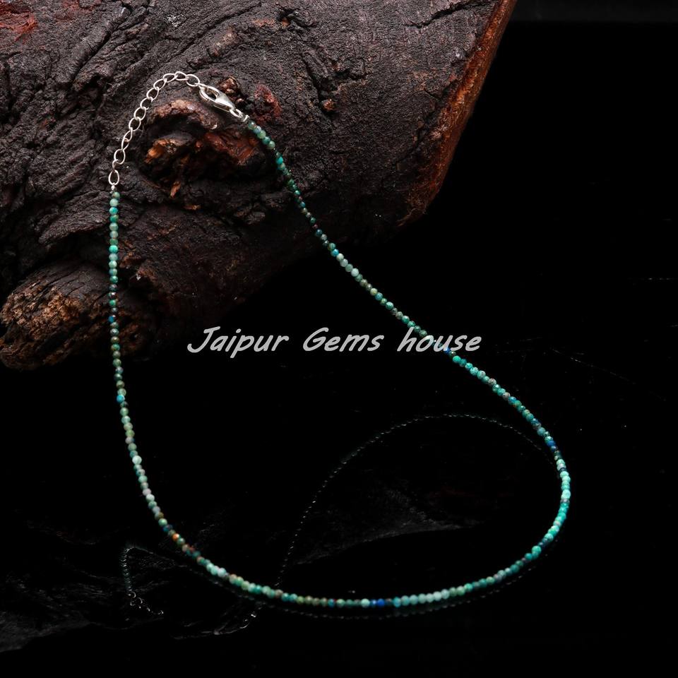 Venta caliente cadenas minimalistas hechas a mano ajustable Sier Nelace azul Natural crisocola cuentas de piedras preciosas para bodas regalos de moda
