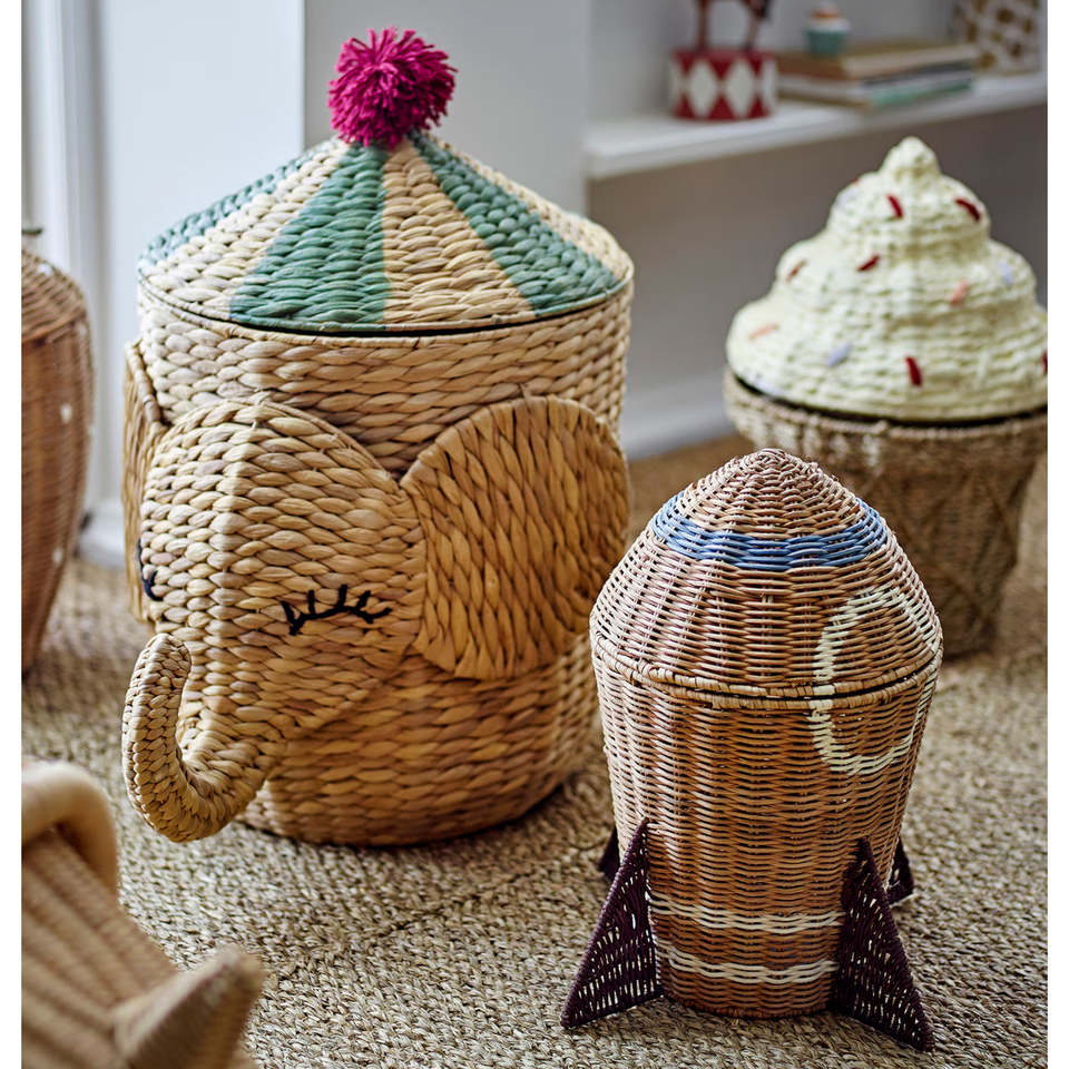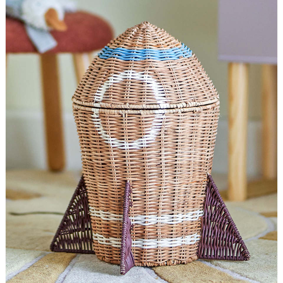 Cesta de Mimbre Hecha a Mano en Forma de Cohete, Decorativa, Organizador de Juguetes, Hecho en Vietnam