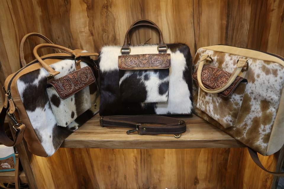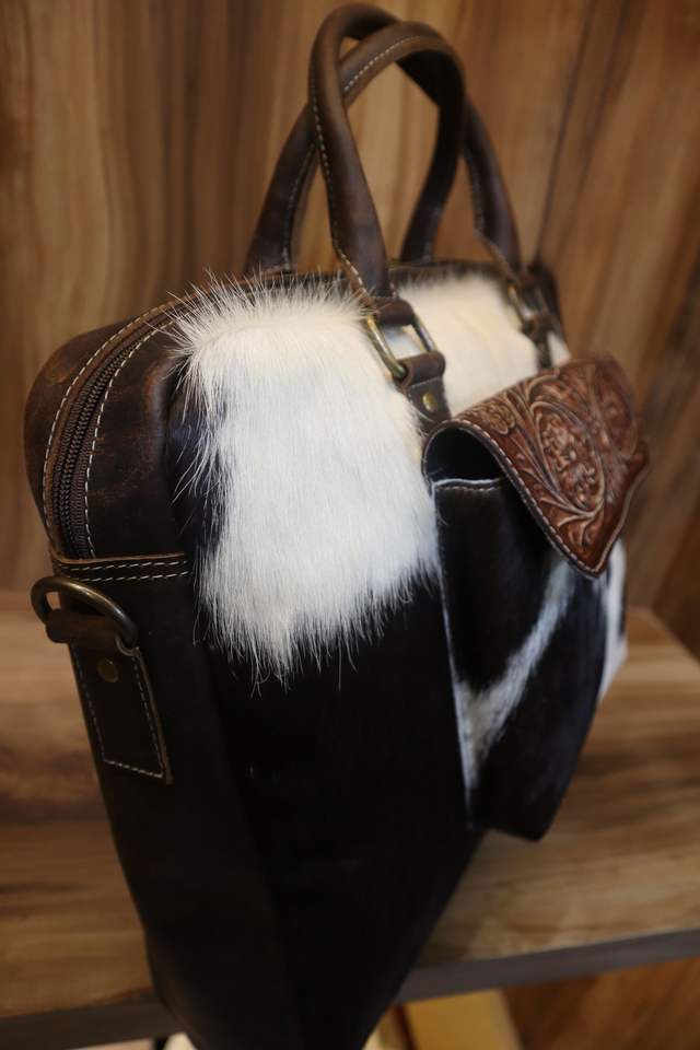 Producto:Mano Tooled pelo en la bolsa de mensajero de cuero