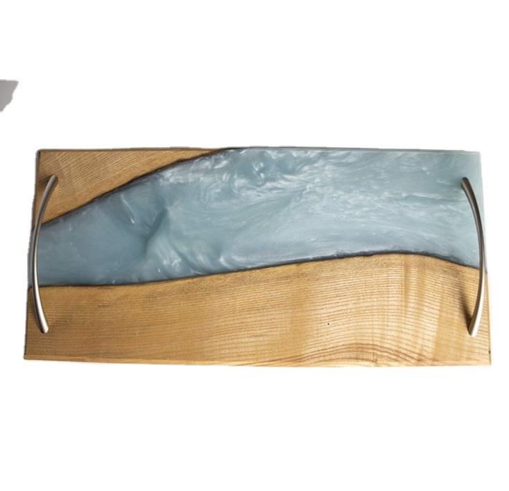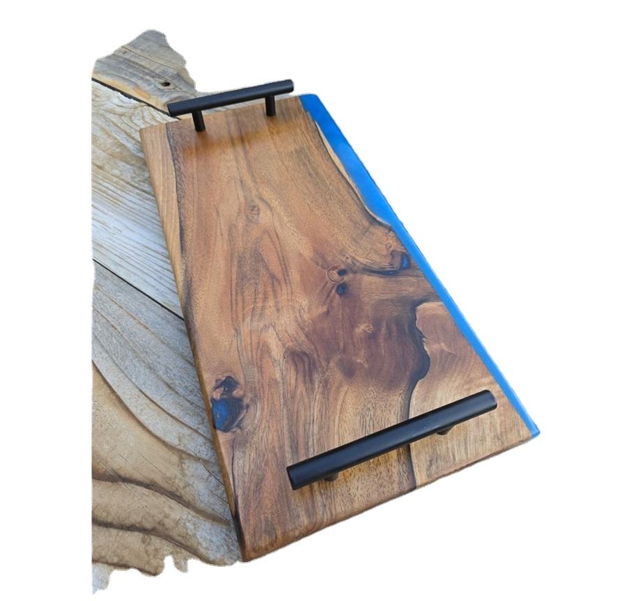 Bandeja de resina epoxi para servir de madera hecha a mano, bandeja para servir alimentos y bebidas, uso doméstico en Hotel o como regalo, bandeja de resina