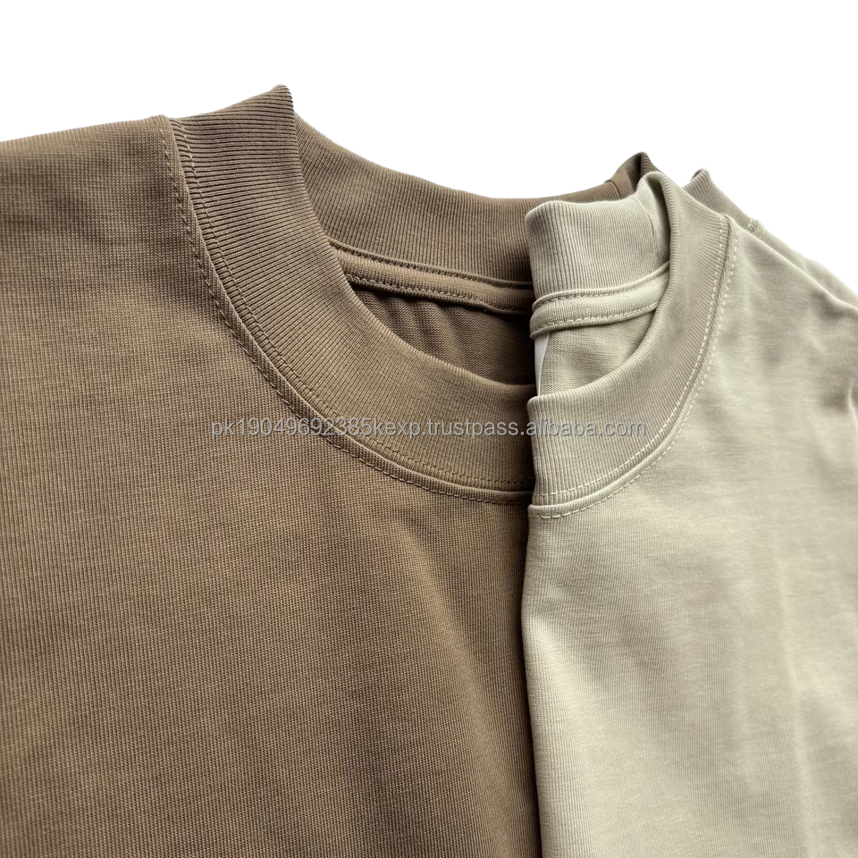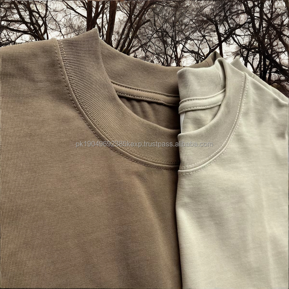 Camiseta de Algodón Orgánico 100% de Alta Calidad, 350 Gramos, Cuello Grueso, Lisa, para Hombre, Estilo Oversize, Tejido de Punto Pesado, Venta Caliente