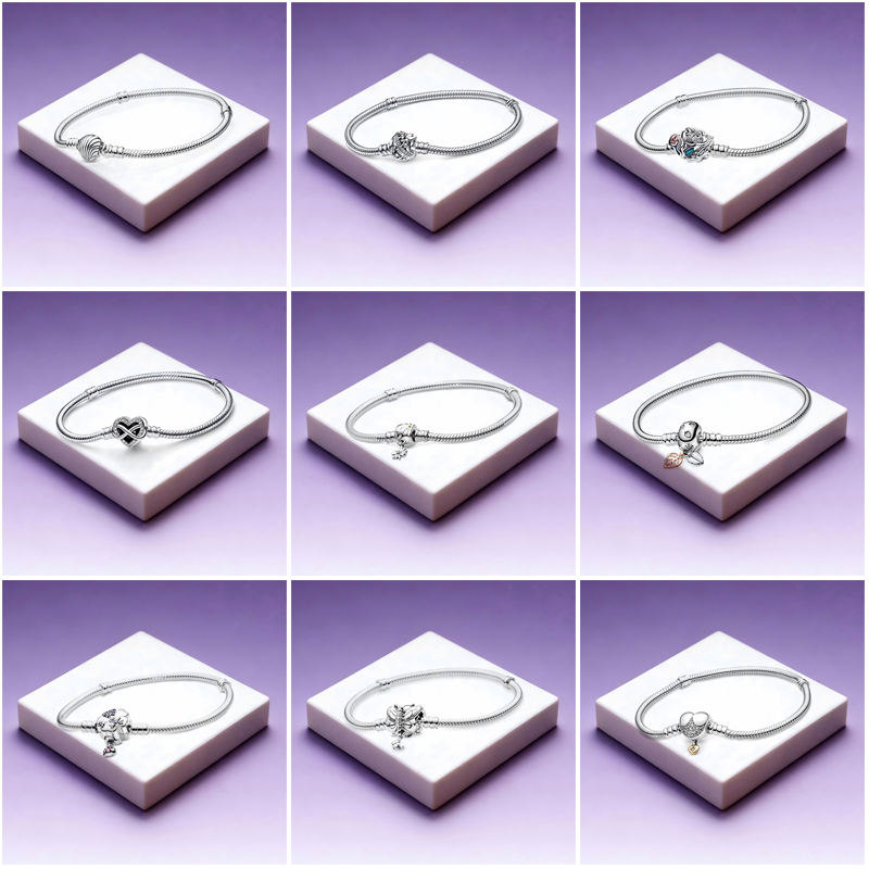 Pulseras Pandora de Plata de Ley 925 Auténticas de Alta Calidad con Cadena de Serpiente y Circonitas, en Oferta, para Mujer