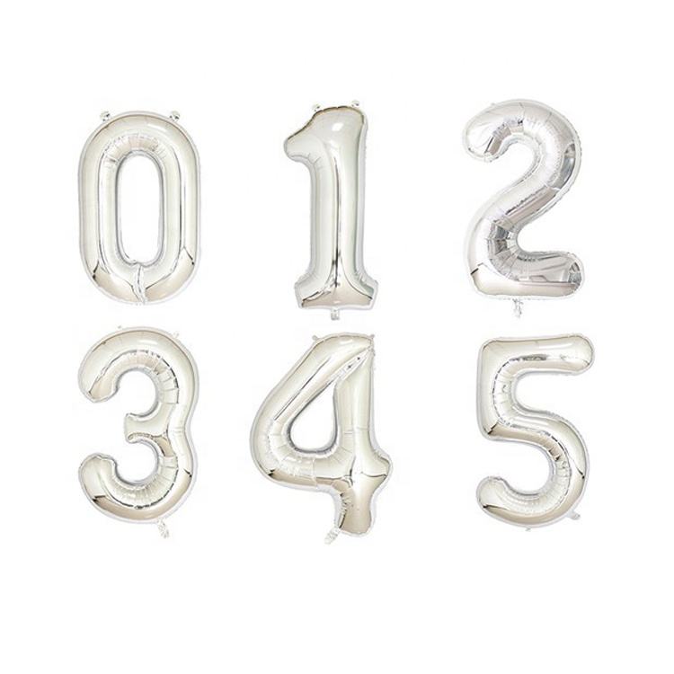 Venta caliente de alta calidad logotipo personalizado 34 pulgadas número globos plata Color 0-5 número globo plata