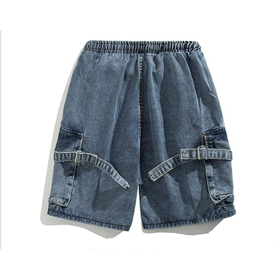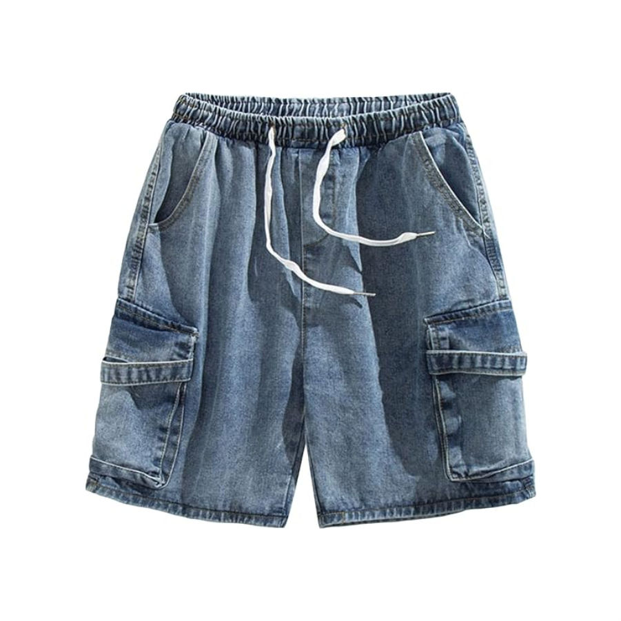 Pantalones cortos holgados de mezclilla azul claro para hombre de alta calidad, estilo informal recto de algodón 100% con cintura media de punto de verano