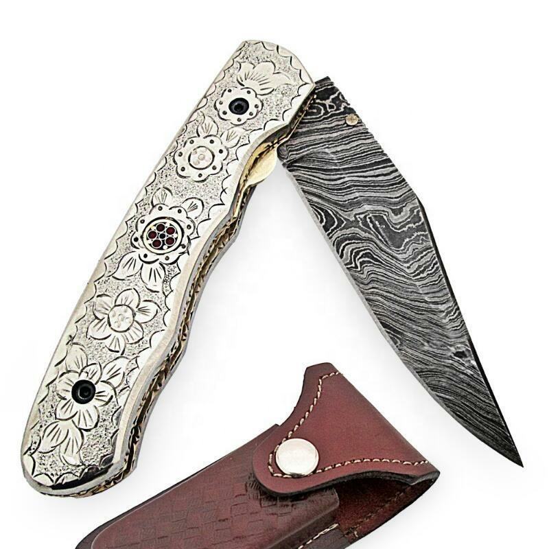 Nombre del producto:CUCHILLO PLEGABLE HERMOSO CUSTOM HECHO A MANO DE ACERO DE DAMASCO
