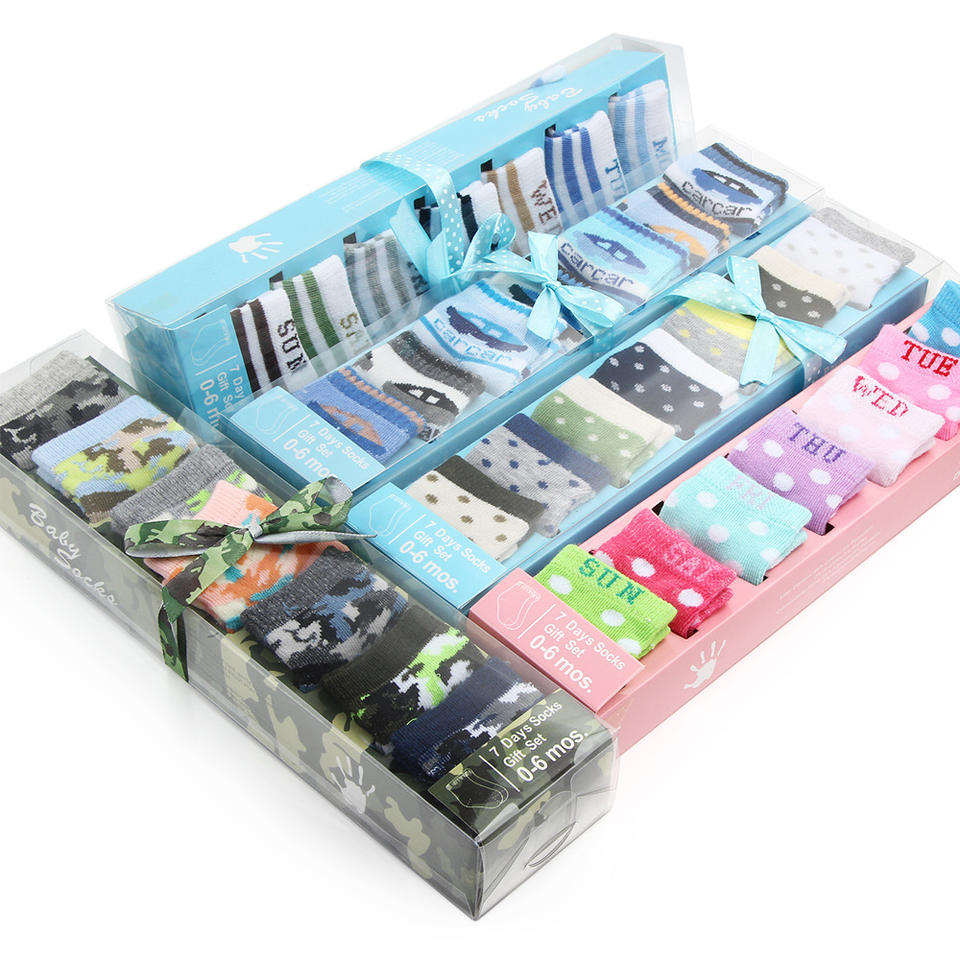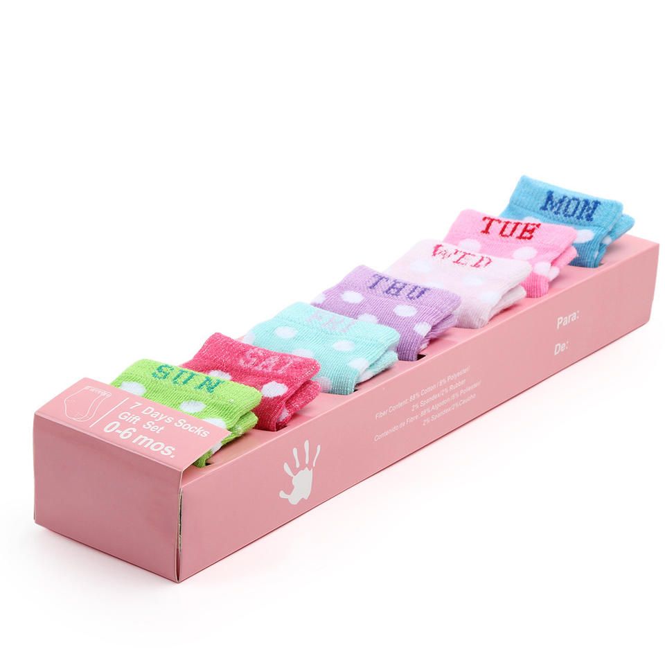 Venta caliente de alta calidad suave siete días recién nacido calcetín semana bebé calcetines 7 pares en un conjunto