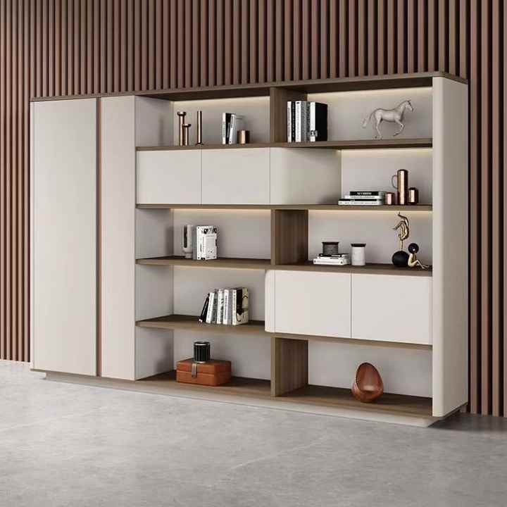 Venta caliente Muebles de madera para el hogar Librería de tablero de madera moderna con puertas y cajones Estantería de estudio personalizada