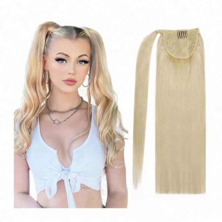 Nombre del Producto:Extensiones de cabello humano con clip de cola de caballo envolvente