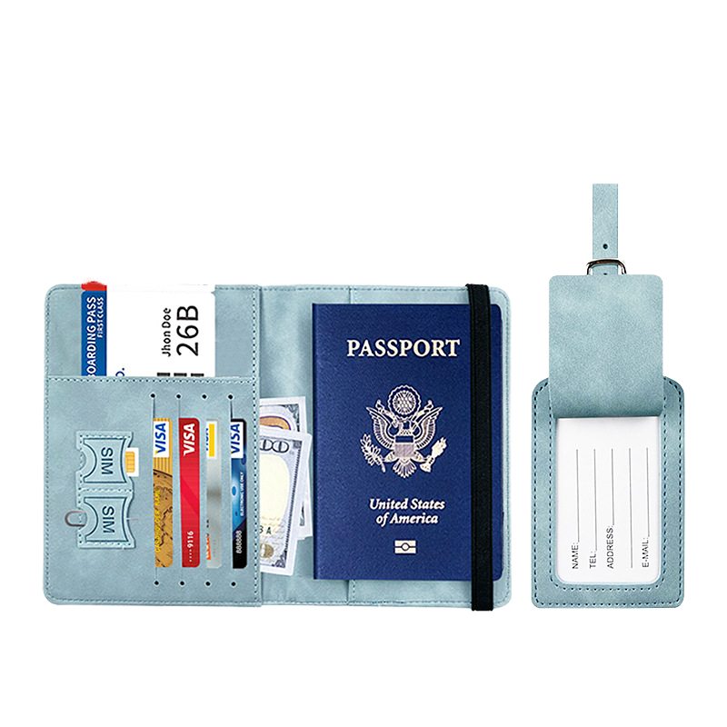 Porta Pasaportes de Cuero PU de Color Puro en Oferta, con Etiqueta para Equipaje, Logotipo Personalizado, Correa Elástica