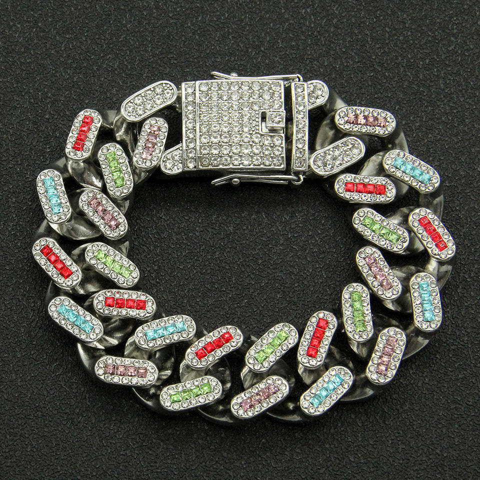 Pulsera de Cadena de Aleación con Diseño Geométrico Innovador y Pedrería Colorida, Estilo Hiphop, Pulseras para Hombre, Joyería de Moda, Gran Venta