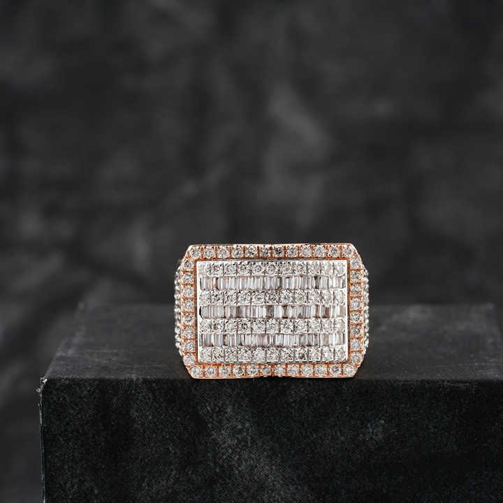 Venta caliente Instock Totalmente Hip Hop Iced Out 14 KT Oro blanco sólido Lab Grown Round Cut Diamond Elegante anillo de moda para hombres