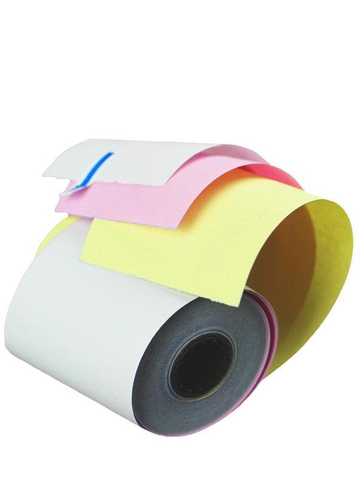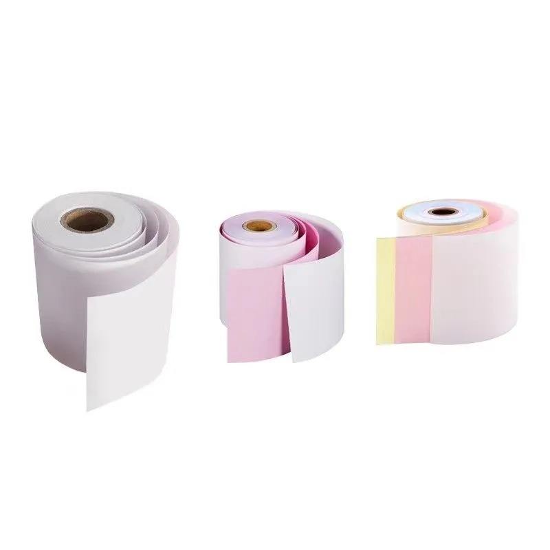 Nombre del producto:3 capas 75*60mm hoja de papel sin carbono Jumbo rollo R forma NCR impresión