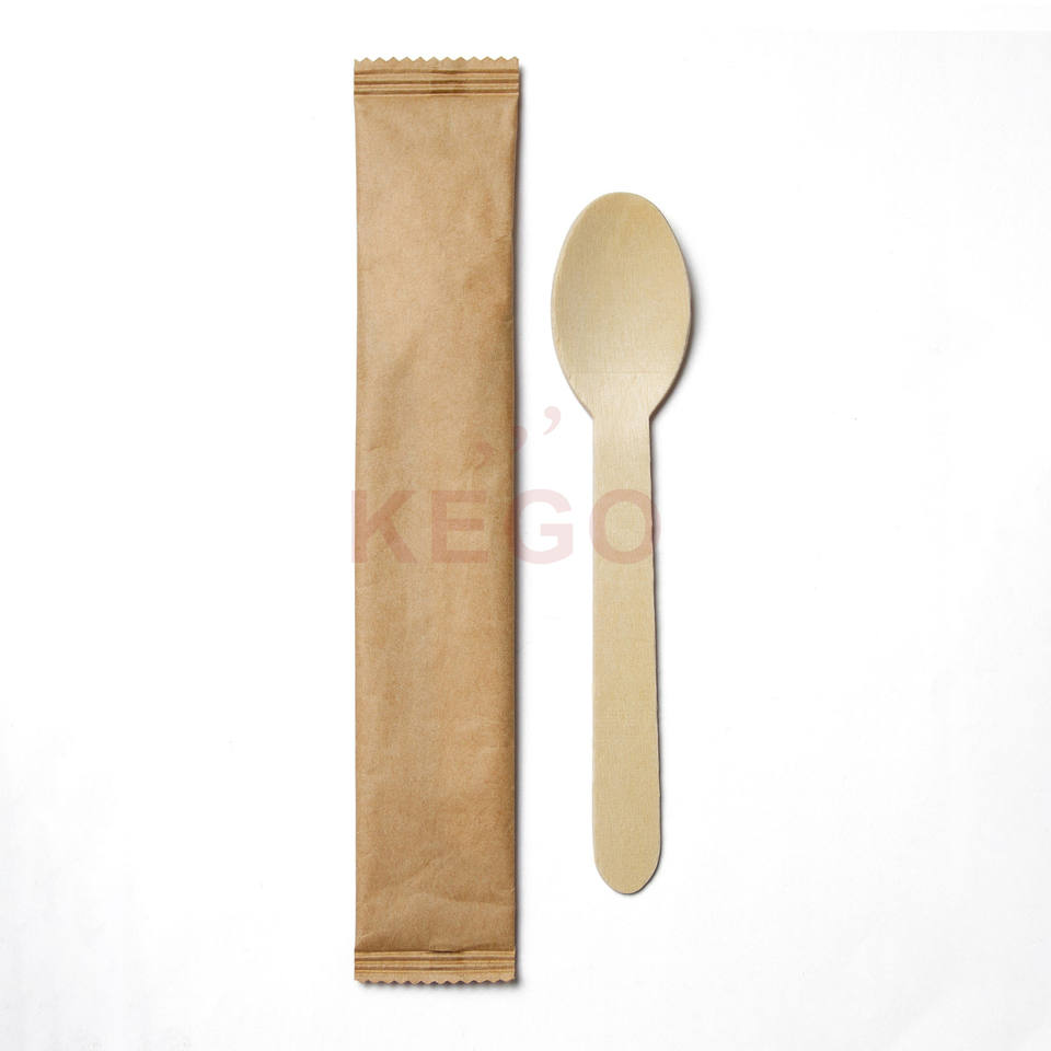 Cuchara Desechable de Madera Kego, 160 mm, Juego de Cubiertos de Papel Kraft, Compostable, Biodegradable, Ecológico, Apto para Alimentos, para Fiestas, Simple