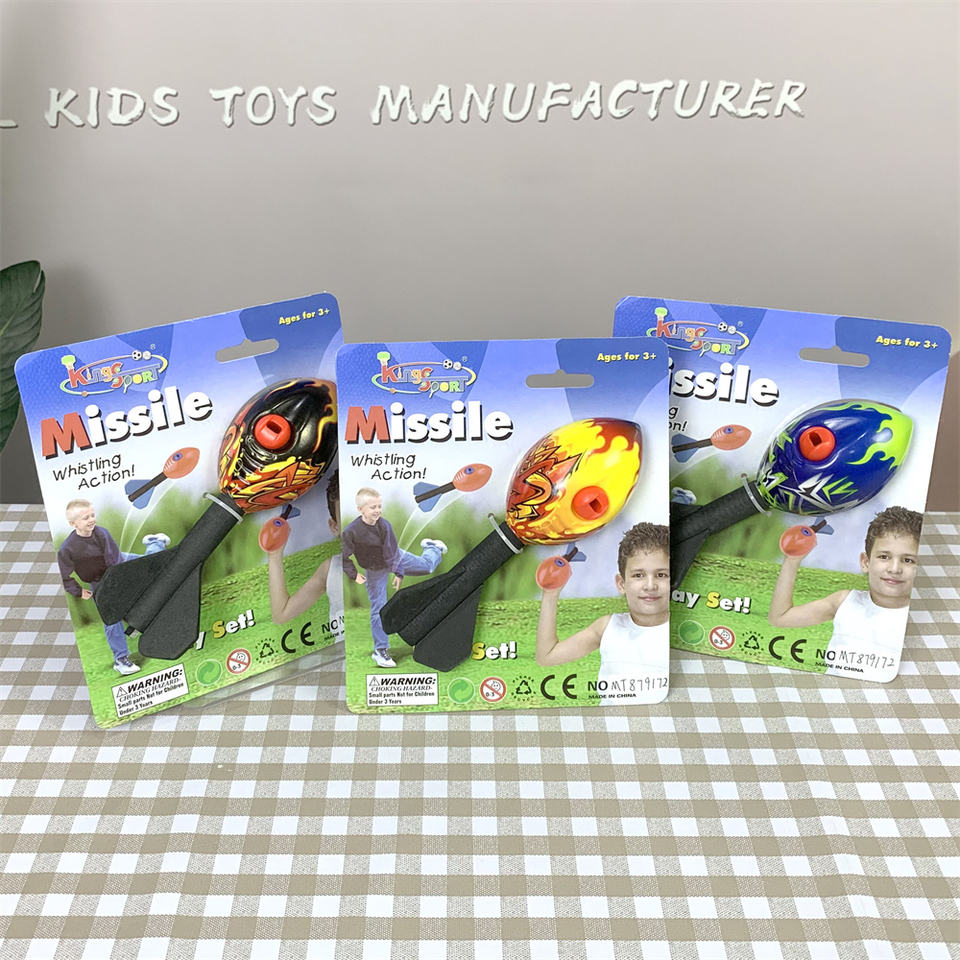 Venta caliente niños larga distancia objetivo lanzar juguetes voladores aullador acelerador espuma cohete Bola con silbatos