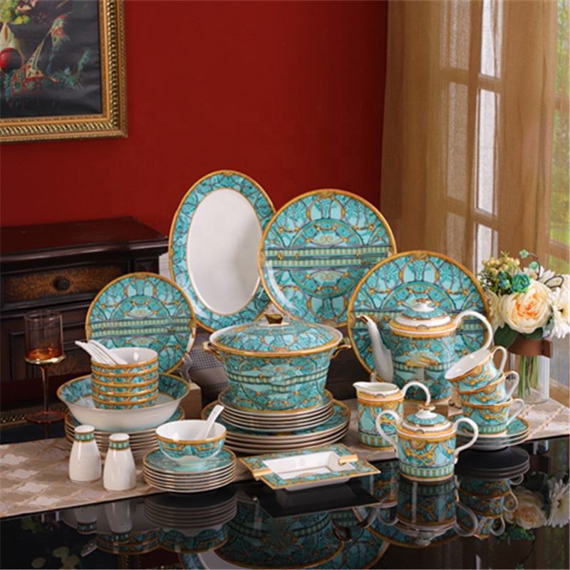 Juego de Vajilla de Porcelana Fina de Lujo, Estilo Occidental, 58 Piezas, Regalos, Venta Caliente