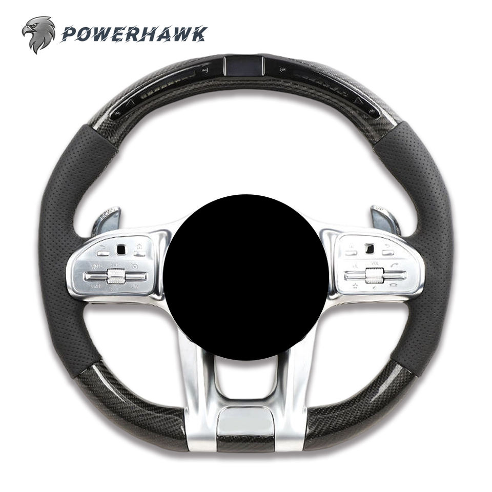 Volante Deportivo de Fibra con Pantalla LED Semiperforada para Mercedes Benz W204 W205 C63 AMG W176 CLK W207 W209 W216 C216