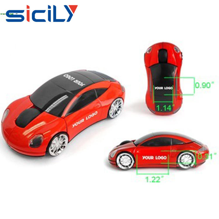 Luz LED impresa a medida, ratón óptico inalámbrico con forma de coche, con USB