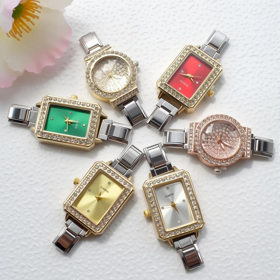 Reloj de Cuarzo para Mujer, Superventas, con Brazalete Modular de Dijes, Cuadrado, con Diamantes, Combinable con Todo, Estilo Europeo y Americano