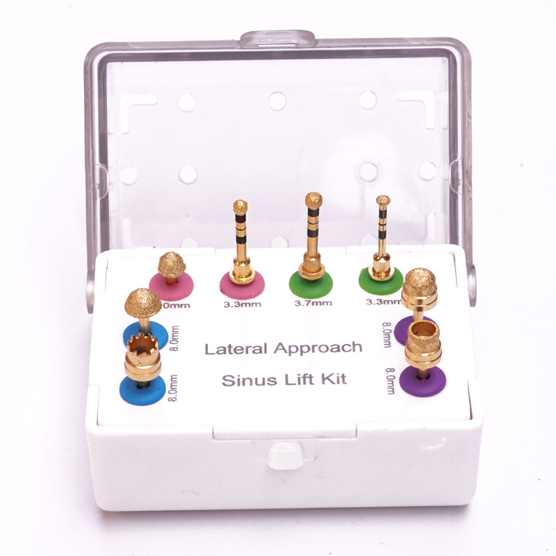Kit de Elevación de Senos de Abordaje Lateral de Gran Venta para Cirugía de Implantes Dentales con Herramientas de Control de Profundidad y Brocas de Paro