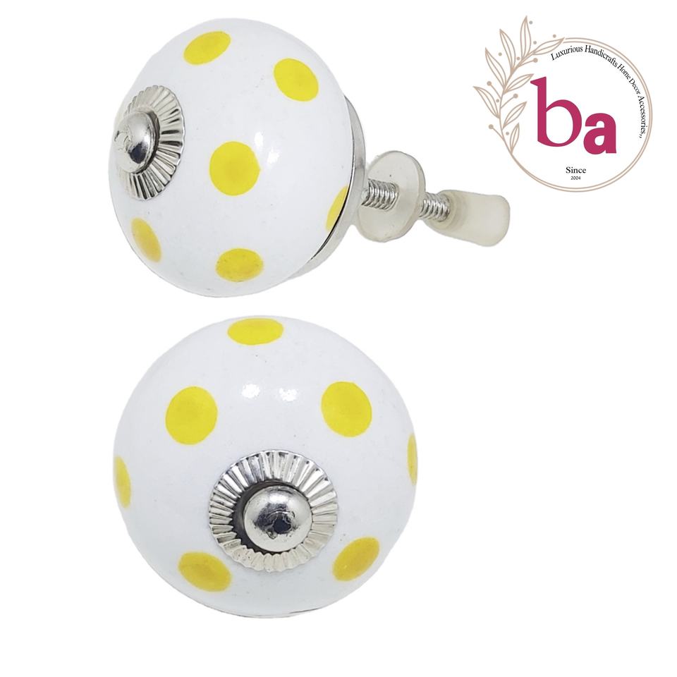 Venta caliente amarillo limón lunares perillas de cerámica blanca armario de cocina tirador de cajón para dormitorio armario tocador-CK 558