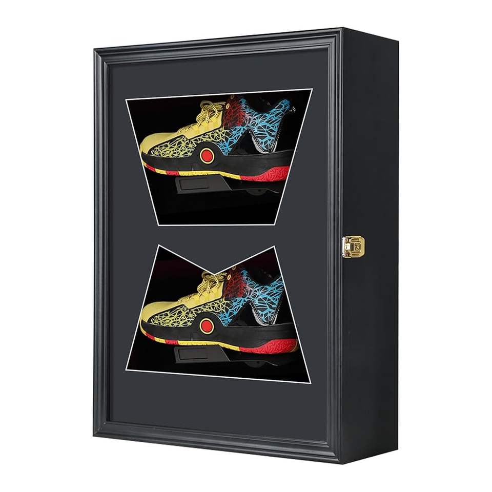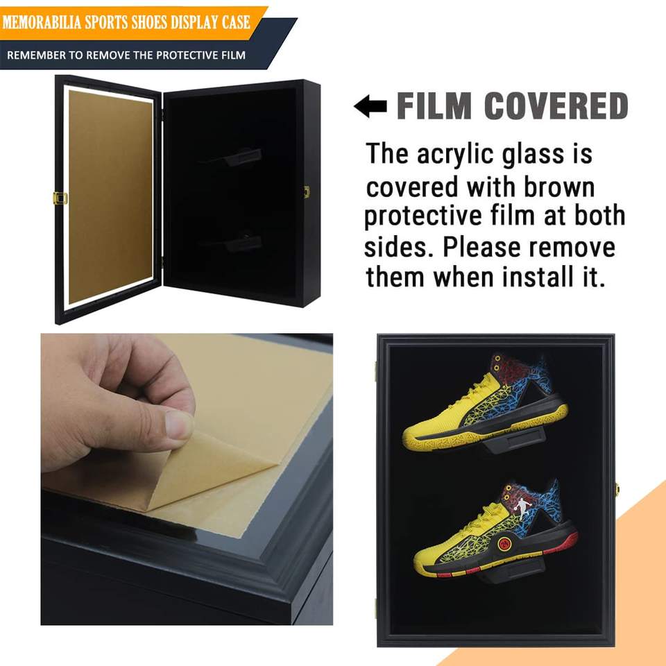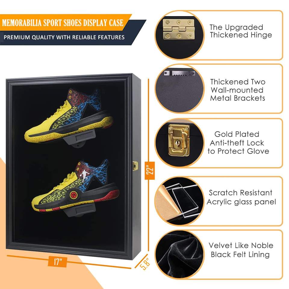 Vitrina Exhibidora de Zapatos con Cerradura, en Madera Negra, para 2 Pares, con Puerta de Acrílico y Acabado Mate, Gran Venta