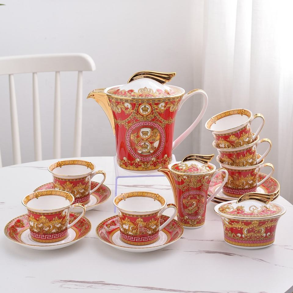 Juego de Té y Tazas de Cerámica Rojas de Lujo de 15 Piezas en Oferta para Regalos de Navidad