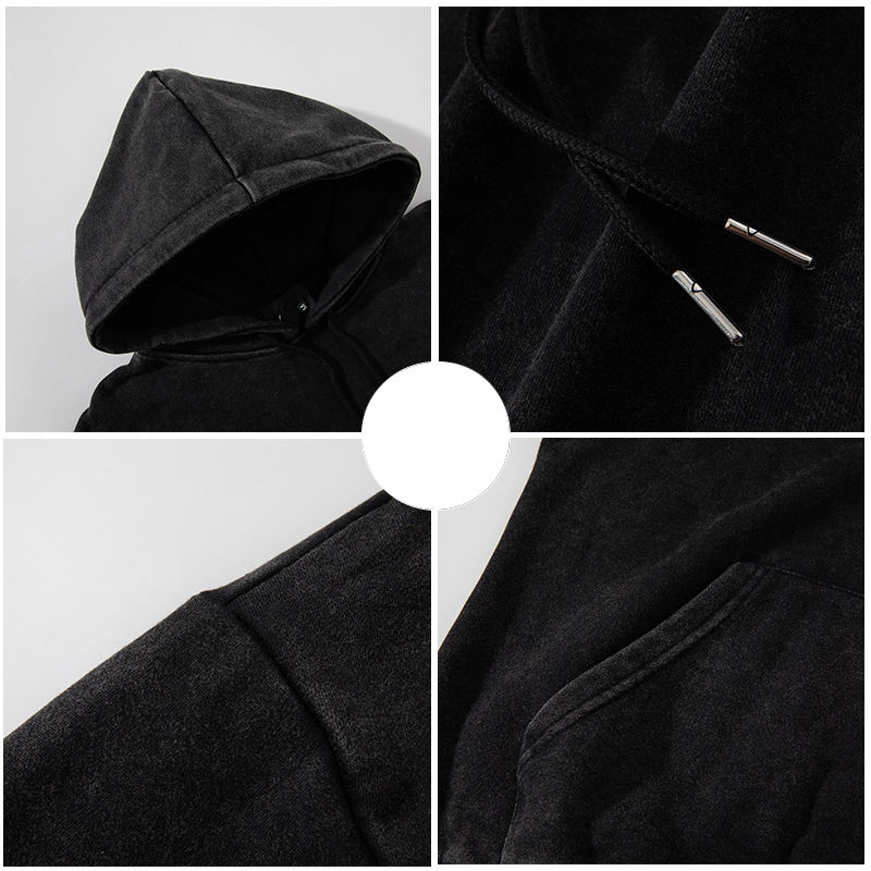 Sudadera con Capucha Oversize para Hombre, Lavado Ácido, Estampado de Logotipo Personalizado, Estilo Urbano, Efecto Desgastado por el Sol, Transpirable, Venta Caliente
