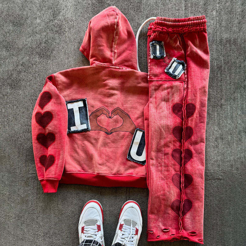 Venta caliente hombres con capucha Streetwear Puff impreso chándales de gran tamaño transpirable Conjuntos Casuales ropa deportiva ajuste Regular