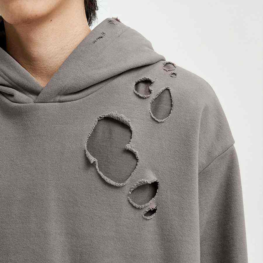 Sudadera con Capucha para Hombre, Estilo Desgastado, Bordada, Personalizable, de Alta Calidad, Venta al por Mayor