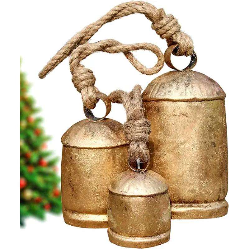 Venta caliente campanas de vaca colgantes de Metal en oro acabado campana de vaca de la suerte campana de vaca de estilo Vintage hecha a mano del exportador indio