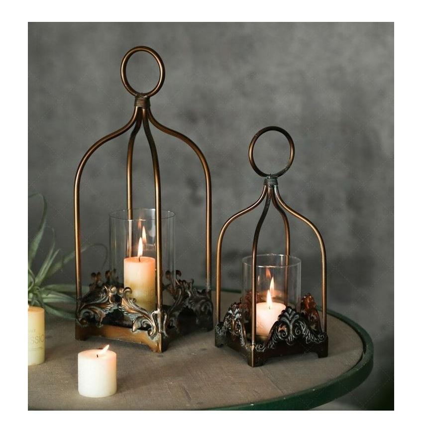 Nombre del producto:Farol de metal y cristal para velas