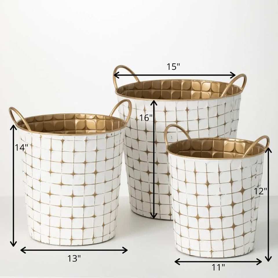 Venta caliente cubo de metal grabado Diseño conjunto de 3 cubos de agua a precio al por mayor