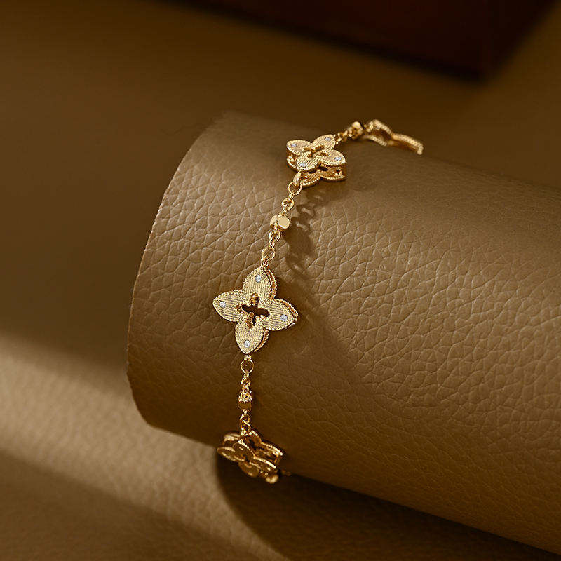 Pulsera de Trébol con Microincrustaciones de Circonio, Diseño de Pétalos Calados, Sensación de Alta Gama para Mujer, Gran Venta