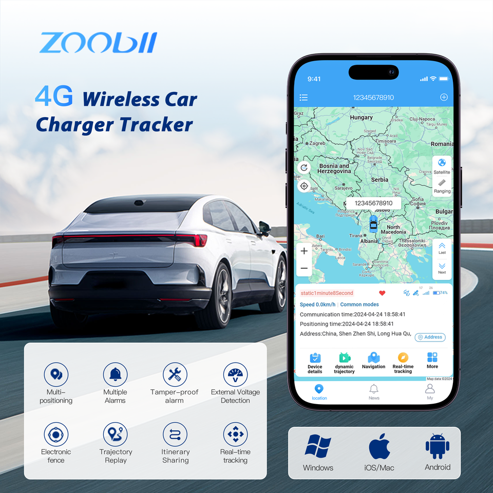 Mini Rastreador GPS 4G LTE GSM para Autos, Resistente al Agua, Montaje en el Tablero, con Aplicación Android y Cargador de Auto Multi-USB, Gran Venta