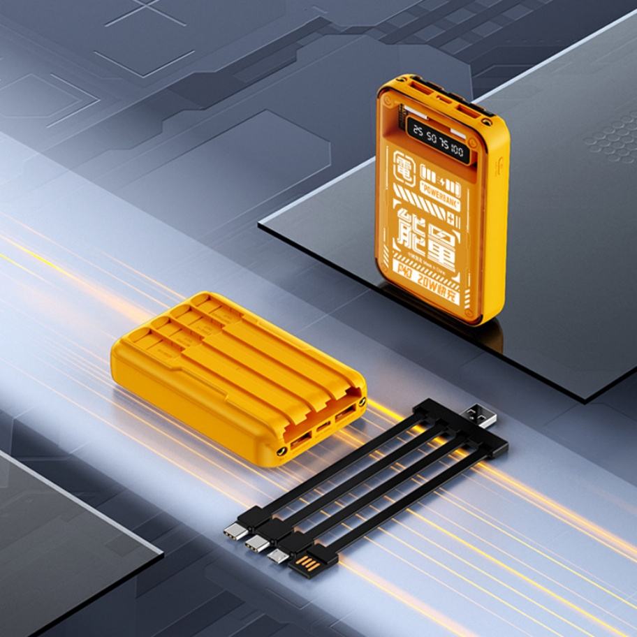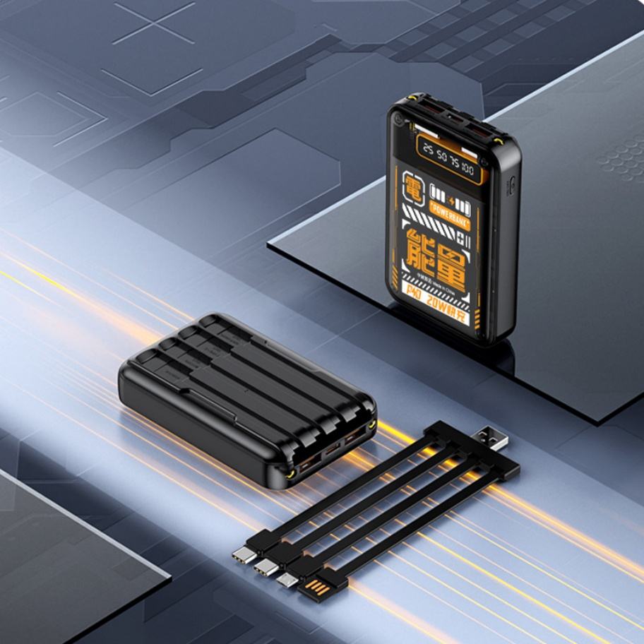 Batería Externa Portátil Mini de 10000mAh y 10W con Cables Integrados, Carga Rápida, Pantalla Digital y Luz LED