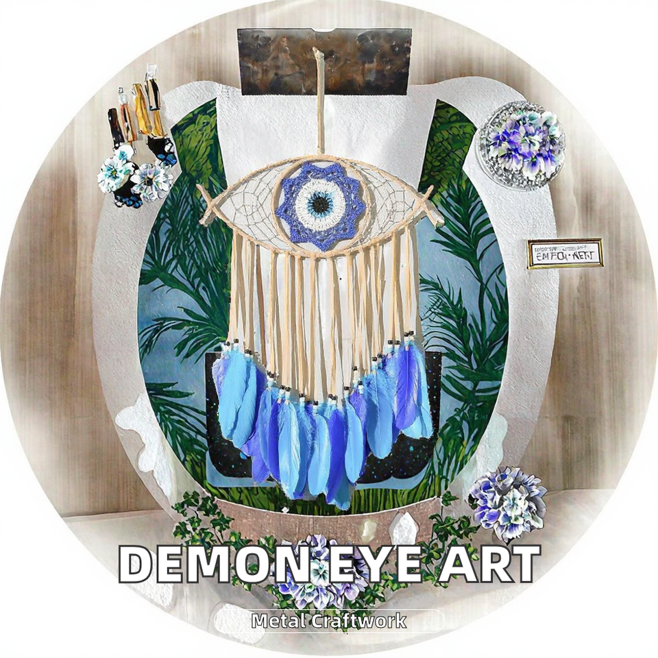 Atrapasueños de Ojo de Demonio Hecho a Mano, Decoración Moderna para el Hogar, Arte de Pared Metálico con Cuerda, Decoración de Pared Art Deco