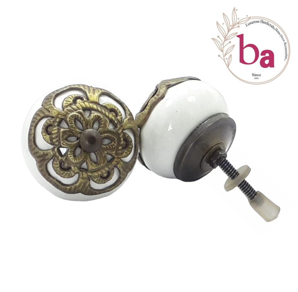 Venta caliente filigrana marroquí perillas de cerámica blanca estilo Industrial cajón gabinete manija Tiradores para cocina dormitorio armario